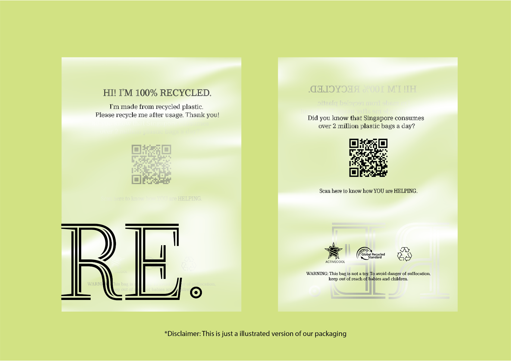 We have introduced our 100% recycled plastic packaging for apparel in this RE Campaign. Our recycled plastic packaging is not only environmentally friendly, but it is also certified under the Global Recycled Standard (GRS), ensuring that our packaging meets the highest standards of sustainability.